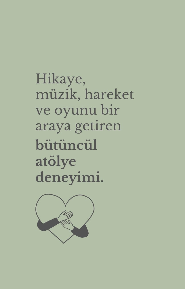 Çalışmalar; hikaye, müzik ve oyunu gelişimsel bir bakışla bir araya getiren bir anlayışla yürütülür. Amaç bir ürün ortaya koymak değil; çocukların deneyimleyerek öğrenebilecekleri güvenli alanlar oluşturmaktır.